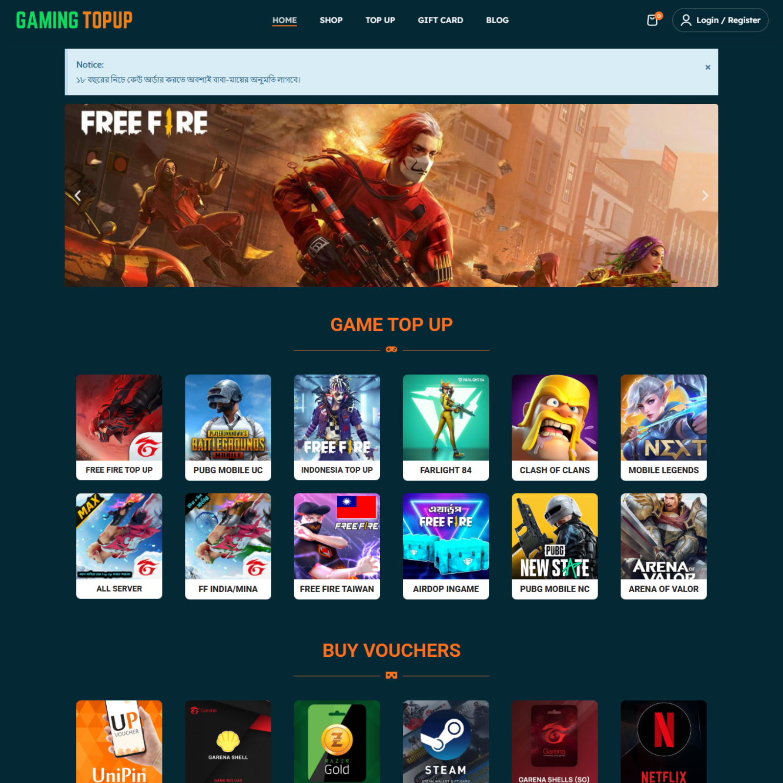 (Demo-3) Games TopUp, Voucher, Digital Product Selling Ready Made Website Code